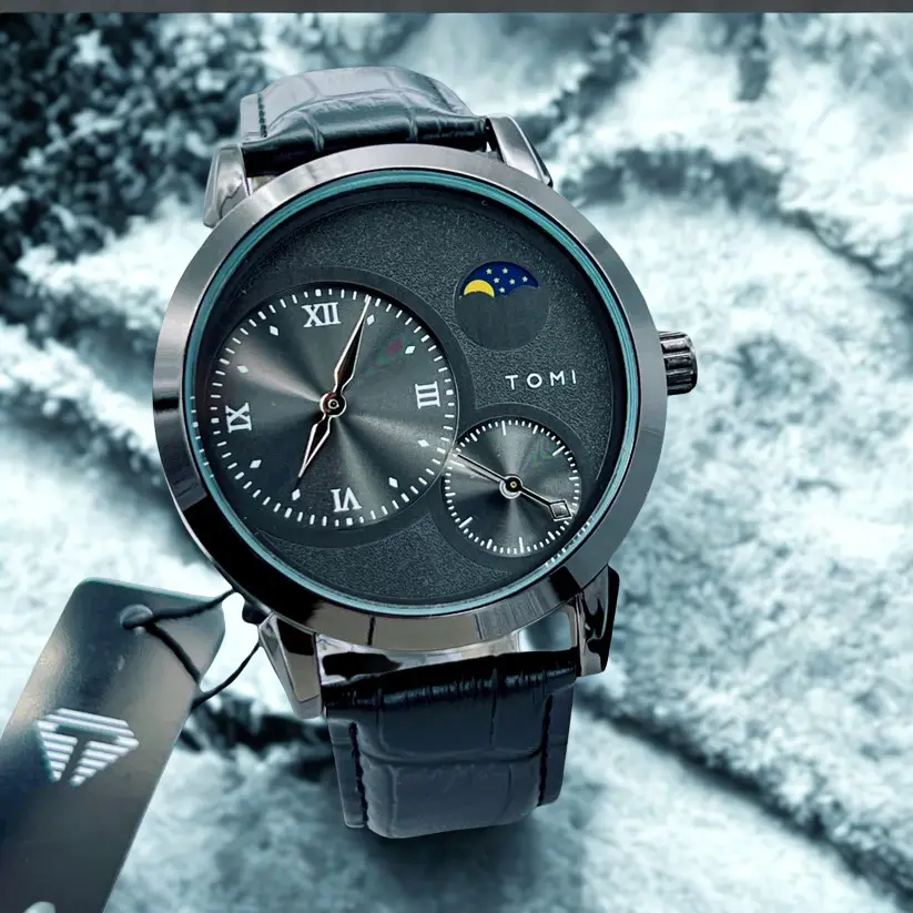 The Tomi T-236 Moon Edition combines striking aesthetics with functionality, making it a statement timepiece for professionals and trendsetters alike. Its contemporary chronograph dial reflects confidence and style.